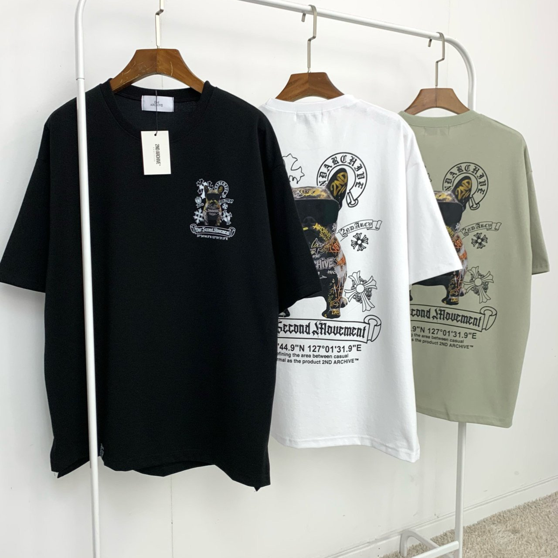 ストリートのカオスを身にまとった、2ND ARCHIVE c/o BWL STUDIO™ の問題作。グラフィティアートで全身を彩られたフレンチブルドッグフィギュア・ゴシッククロス・「2NDARCHIVE SEOUL」のグラフィティロゴ、そしてソウルの座標が刺さったバックプリントは、単なるTシャツを超えたアートピース。「Our Second Movement」——これは反逆の宣言です。