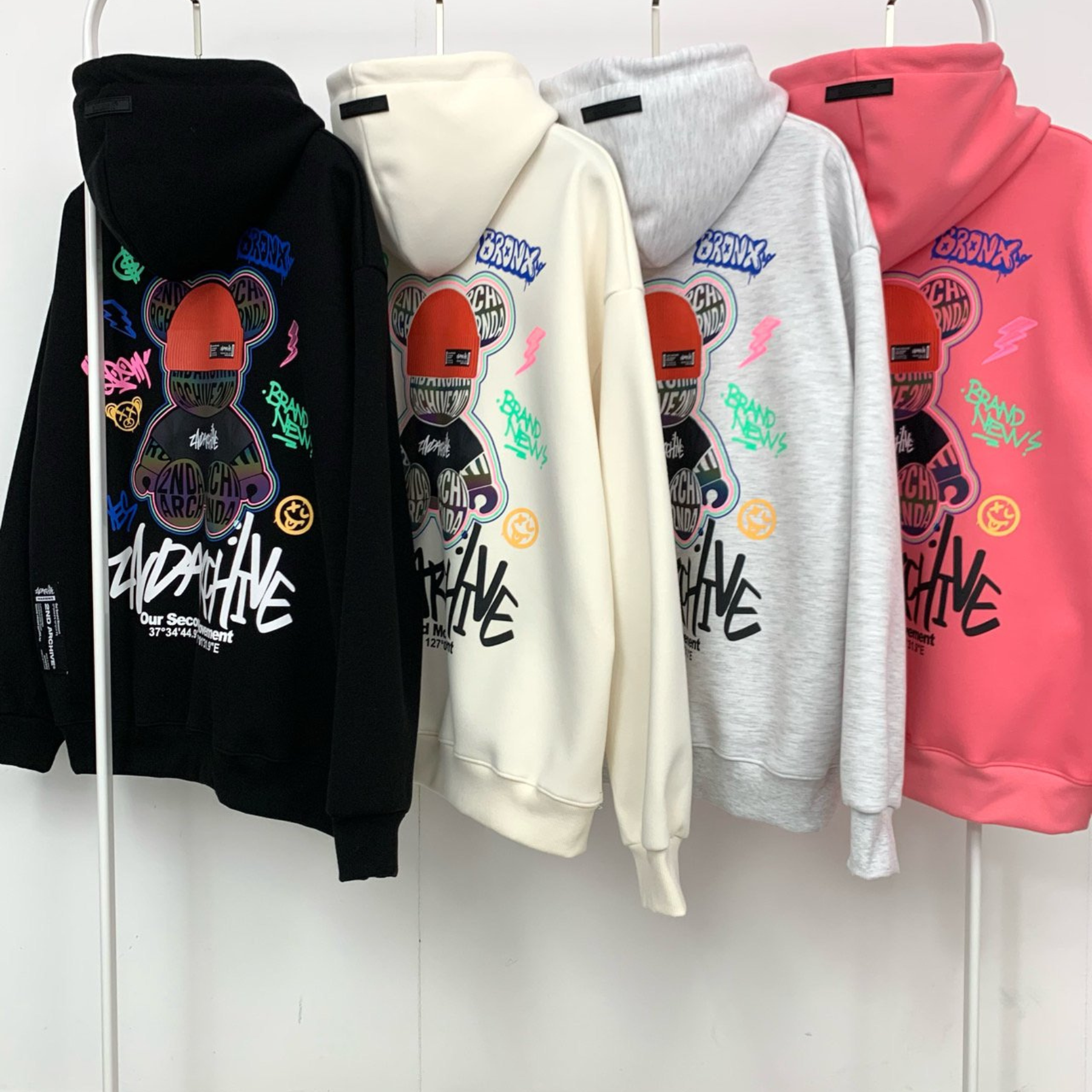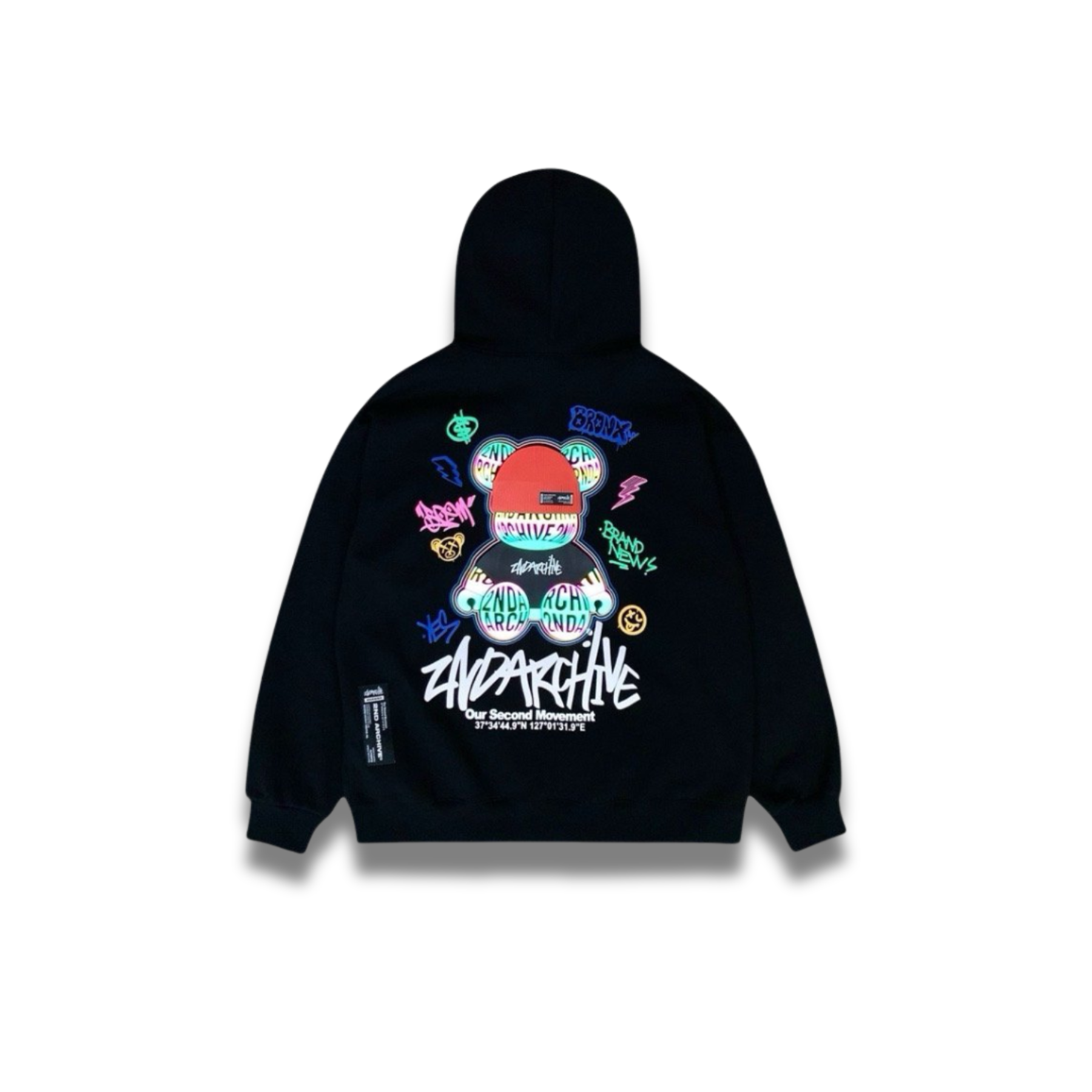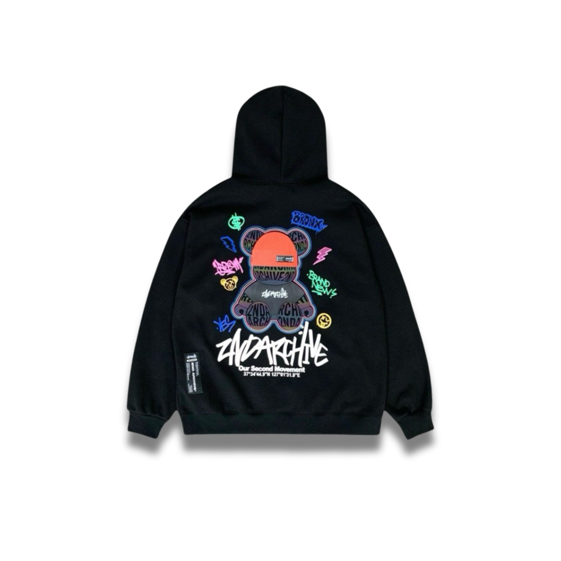 背面に大胆に施されたリフレクティブ(反射)仕様のベアグラフィックが、光に当たるときらめき、夜間のコーデにもアクセントをプラス。フロントにはミニサイズのワンポイントロゴが刺繍され、フードにはさりげなく反映されたストリートなエッセンスが◎。