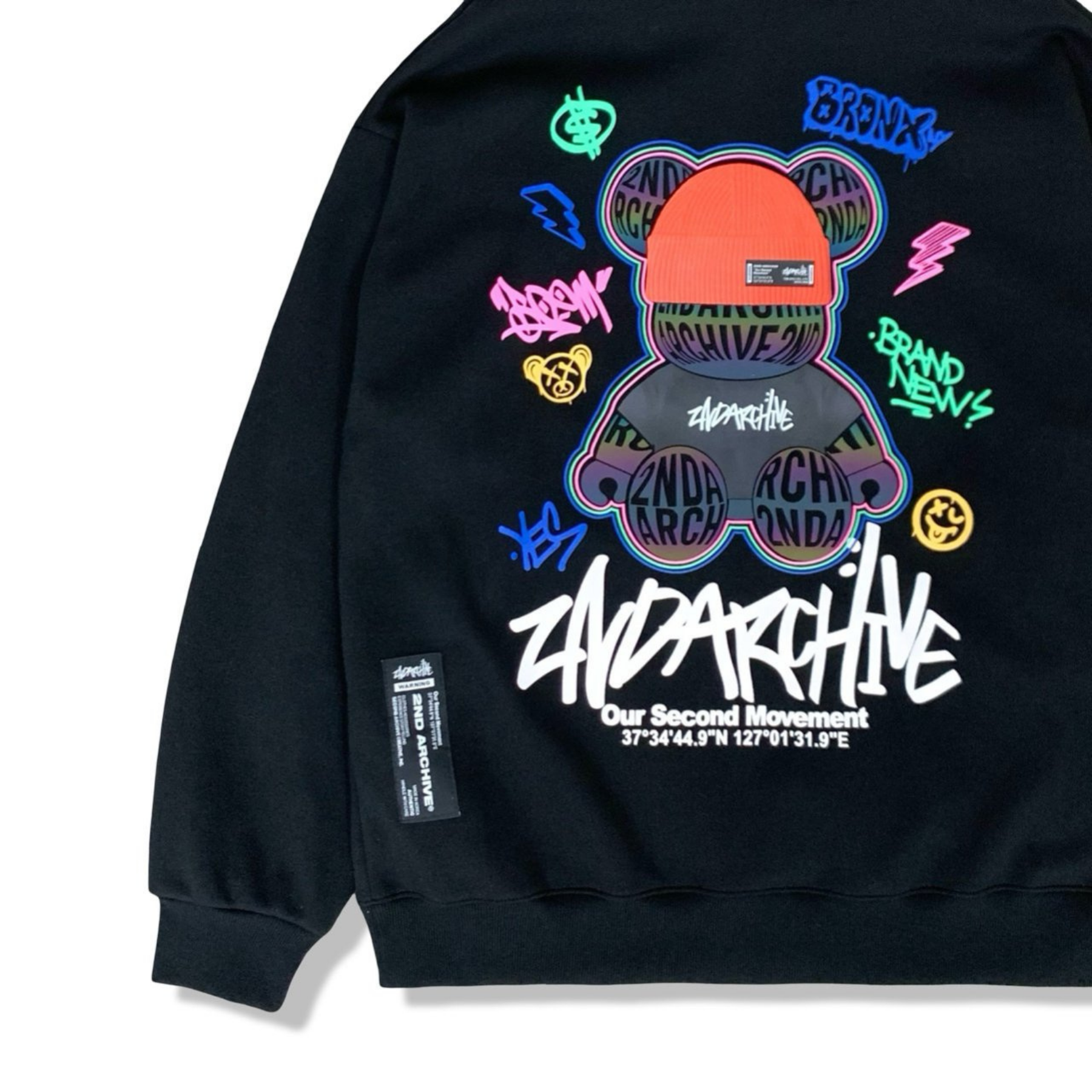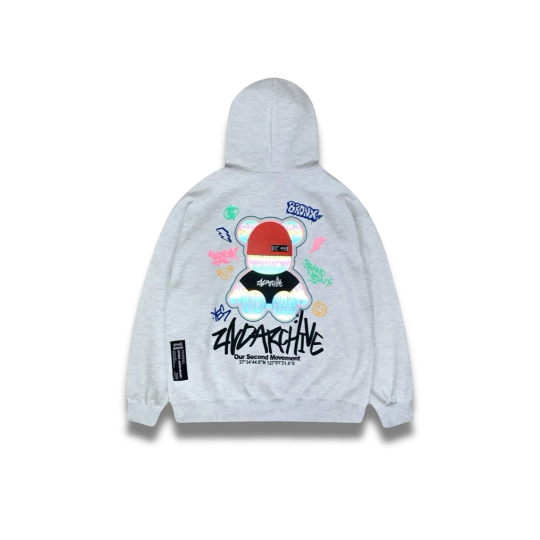 【2nd Archive】レッドレーベル ニットベアパーカー(反射プリント/セットアップ対応)