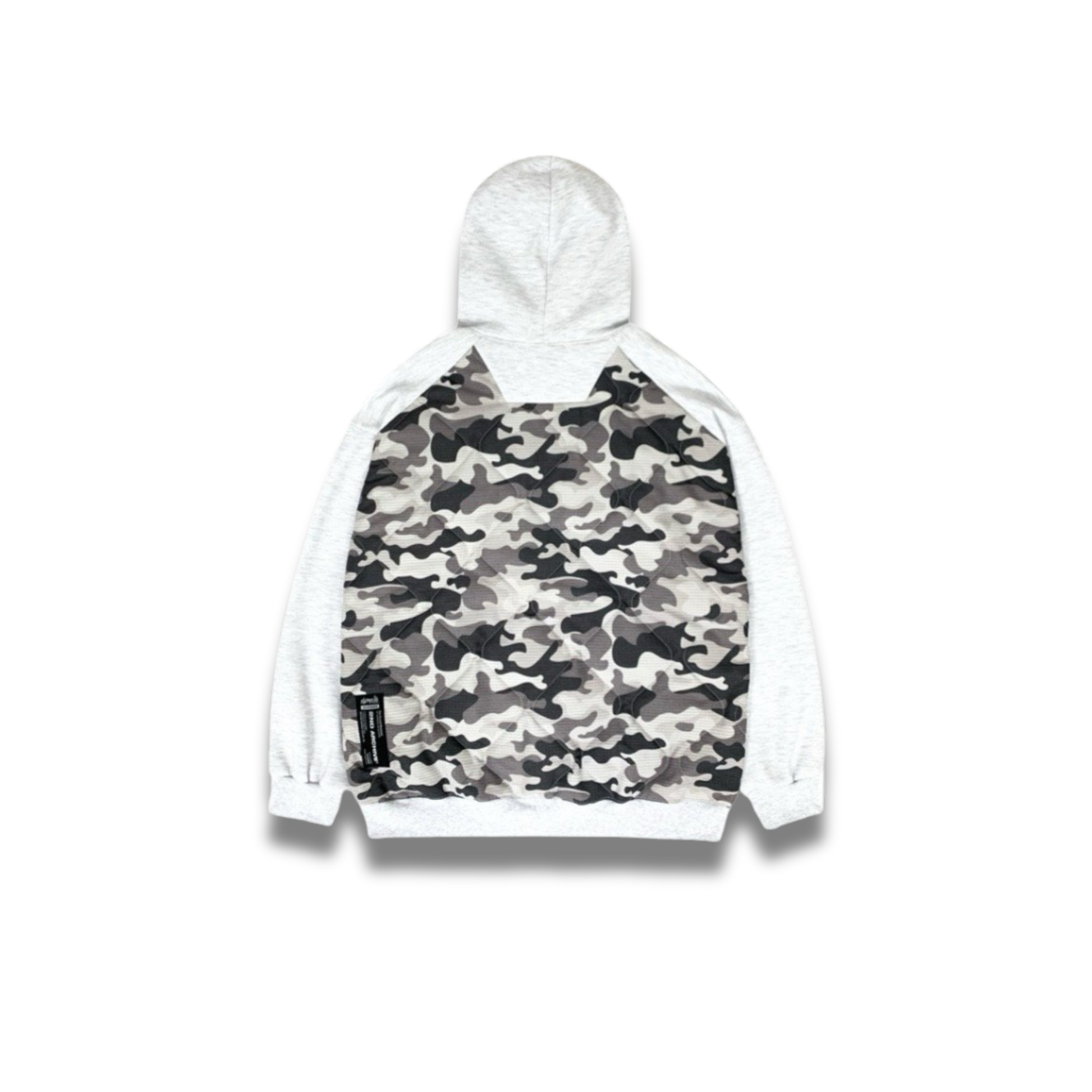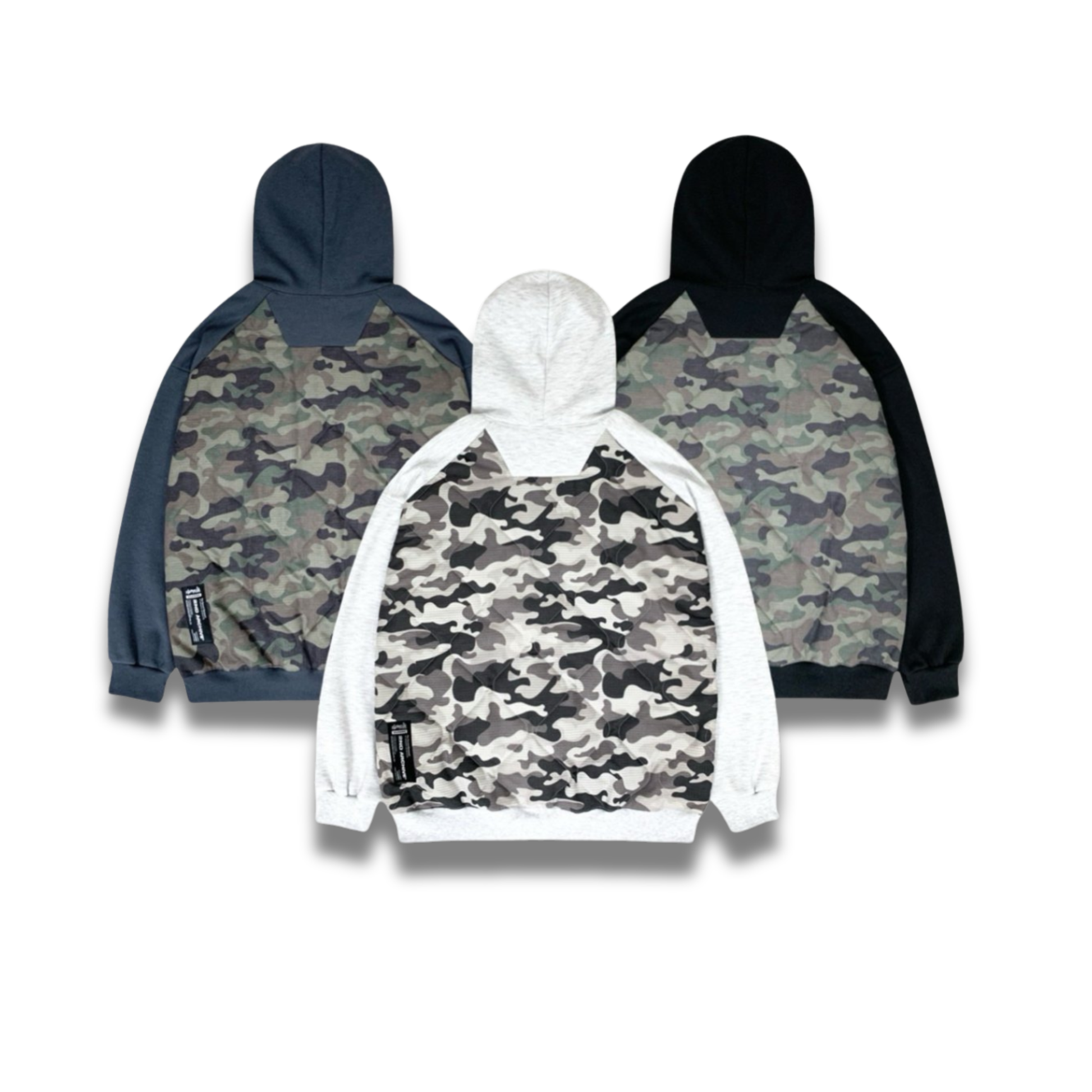 バックパネル全体に施された迷彩柄と中綿キルティングが存在感抜群。さらに裏地は裏起毛仕様でしっかり暖かく、寒い季節でも快適に着用可能。
