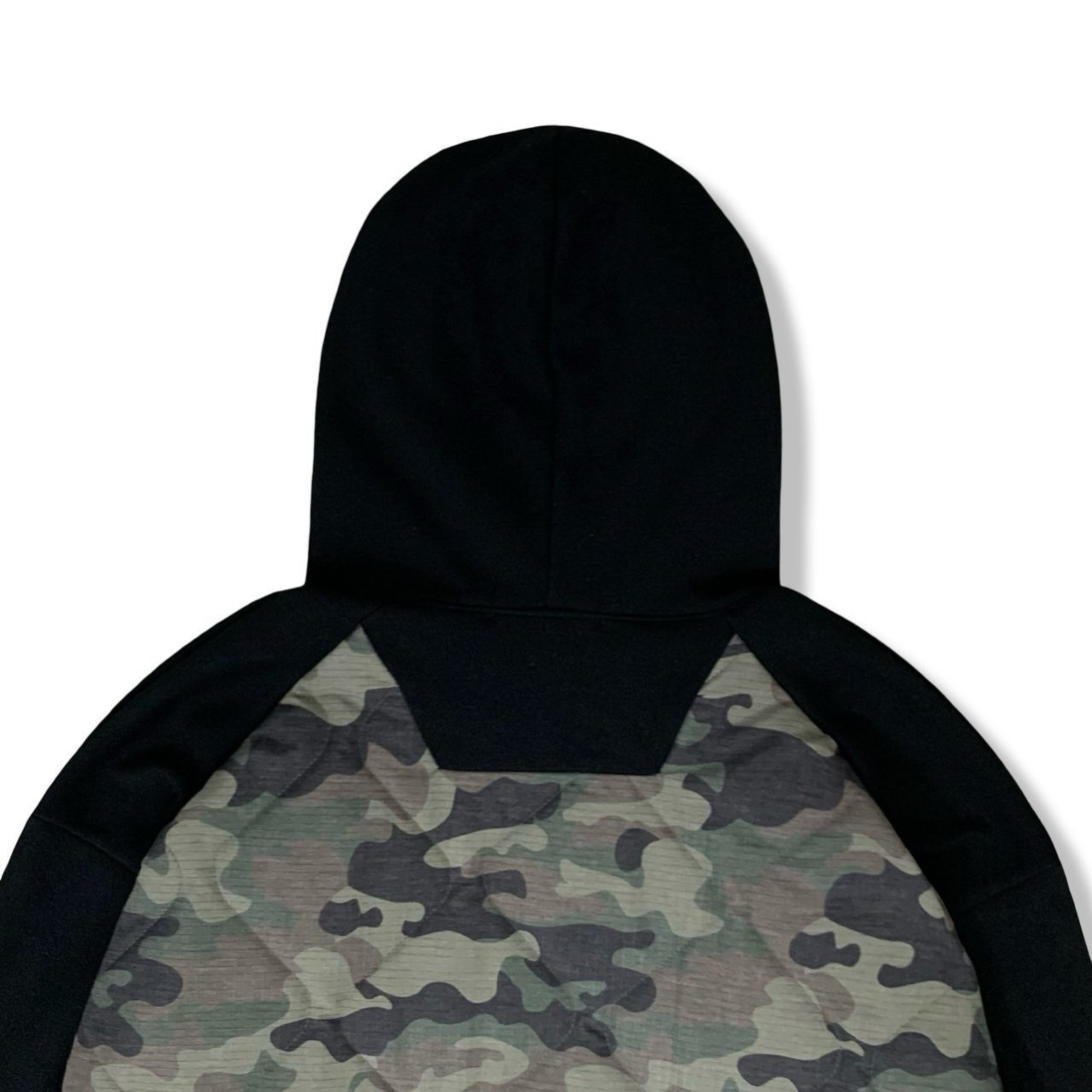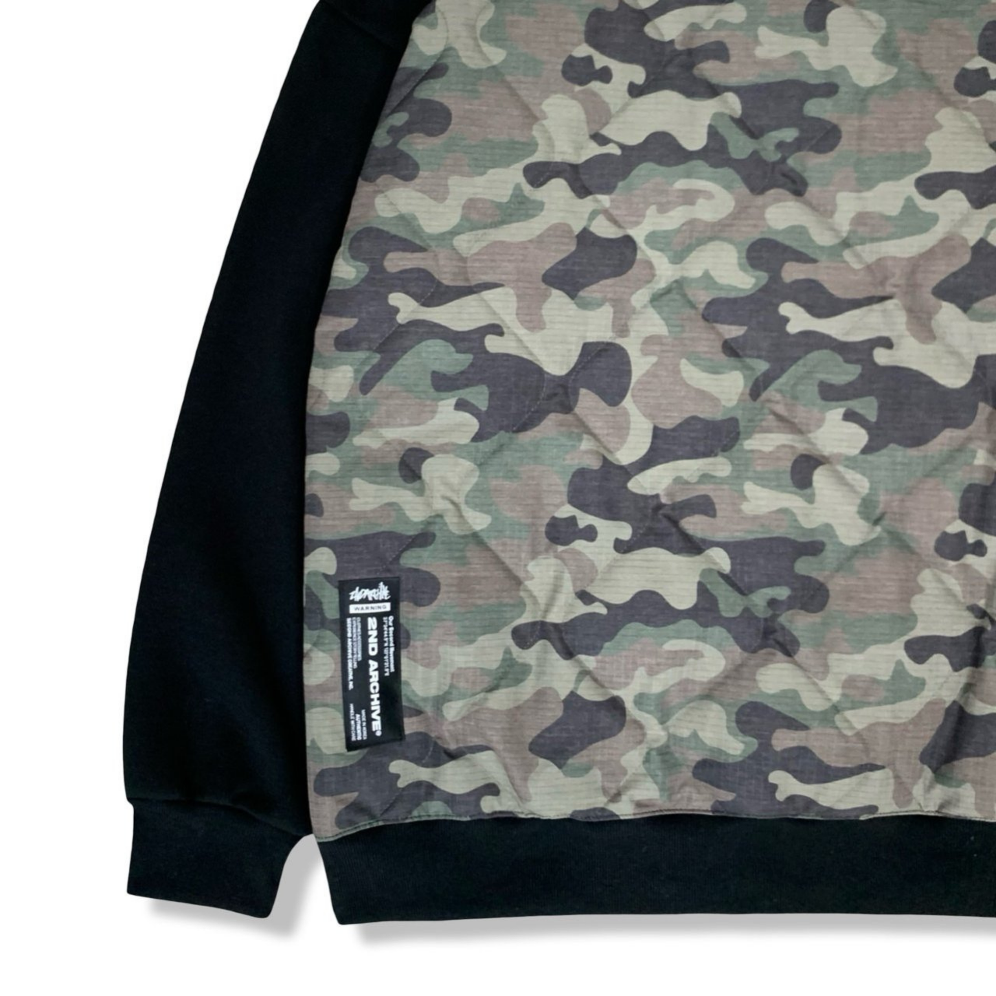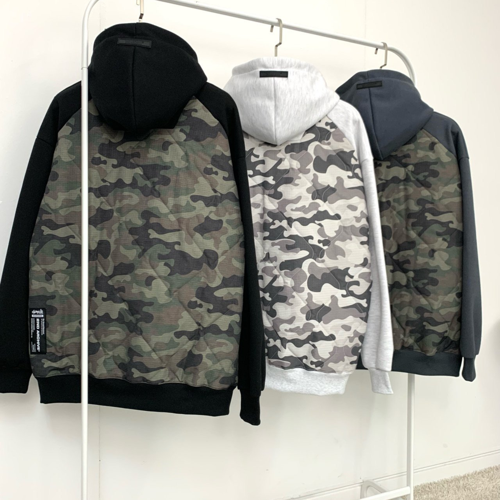 仕様:プルオーバー、胸元ロゴ、カモ柄切り替え、裏起毛、中綿キルティング仕様